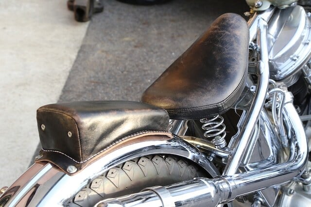 形状は60年代ベイツスタイルの完全復刻ピリオンパッドのタック&ロールです。
