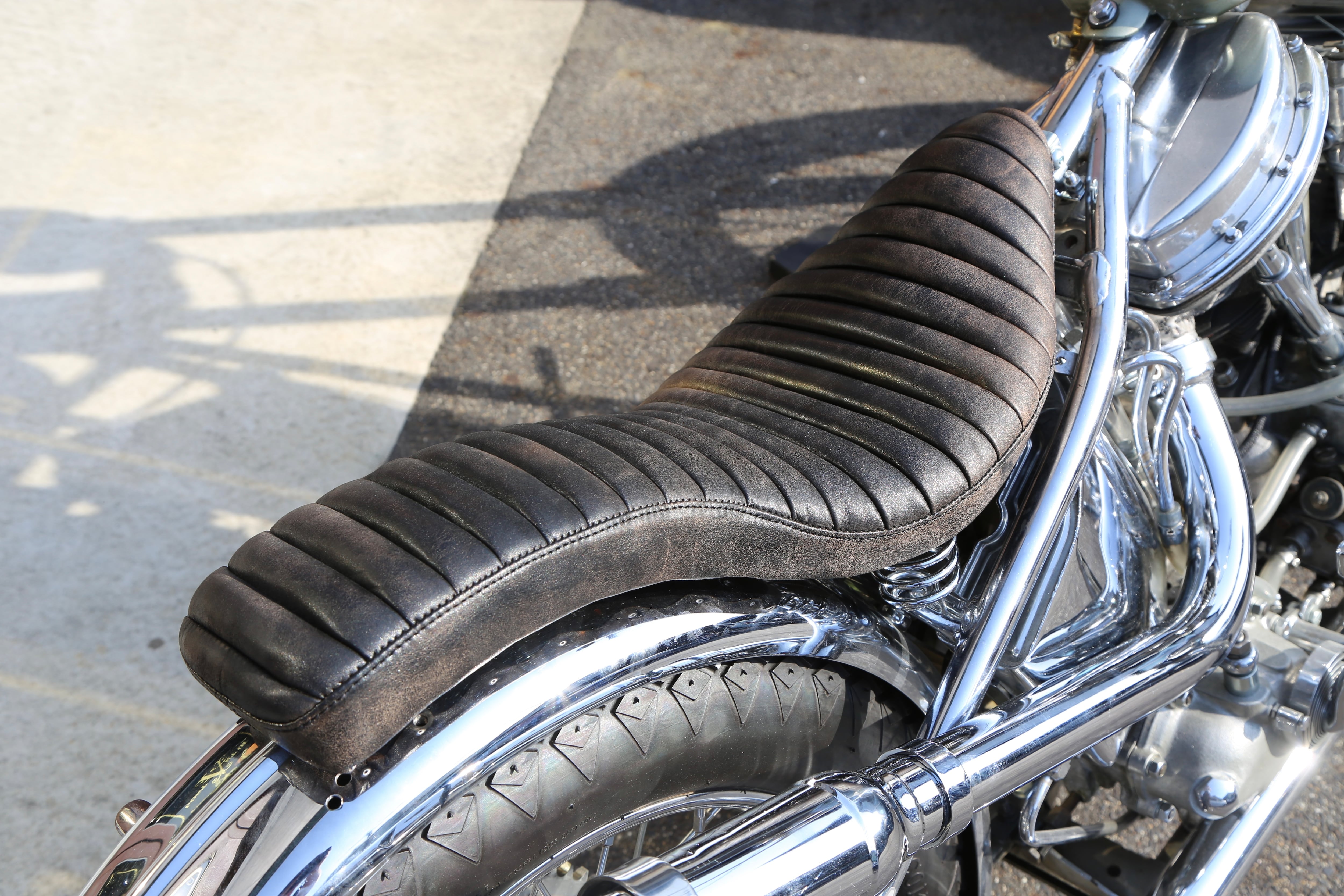 ザ・コブラシートと呼んで良いほどに、60年代スタイルのチョッパーにはこのトラディショナルな形のコブラシート一択です。