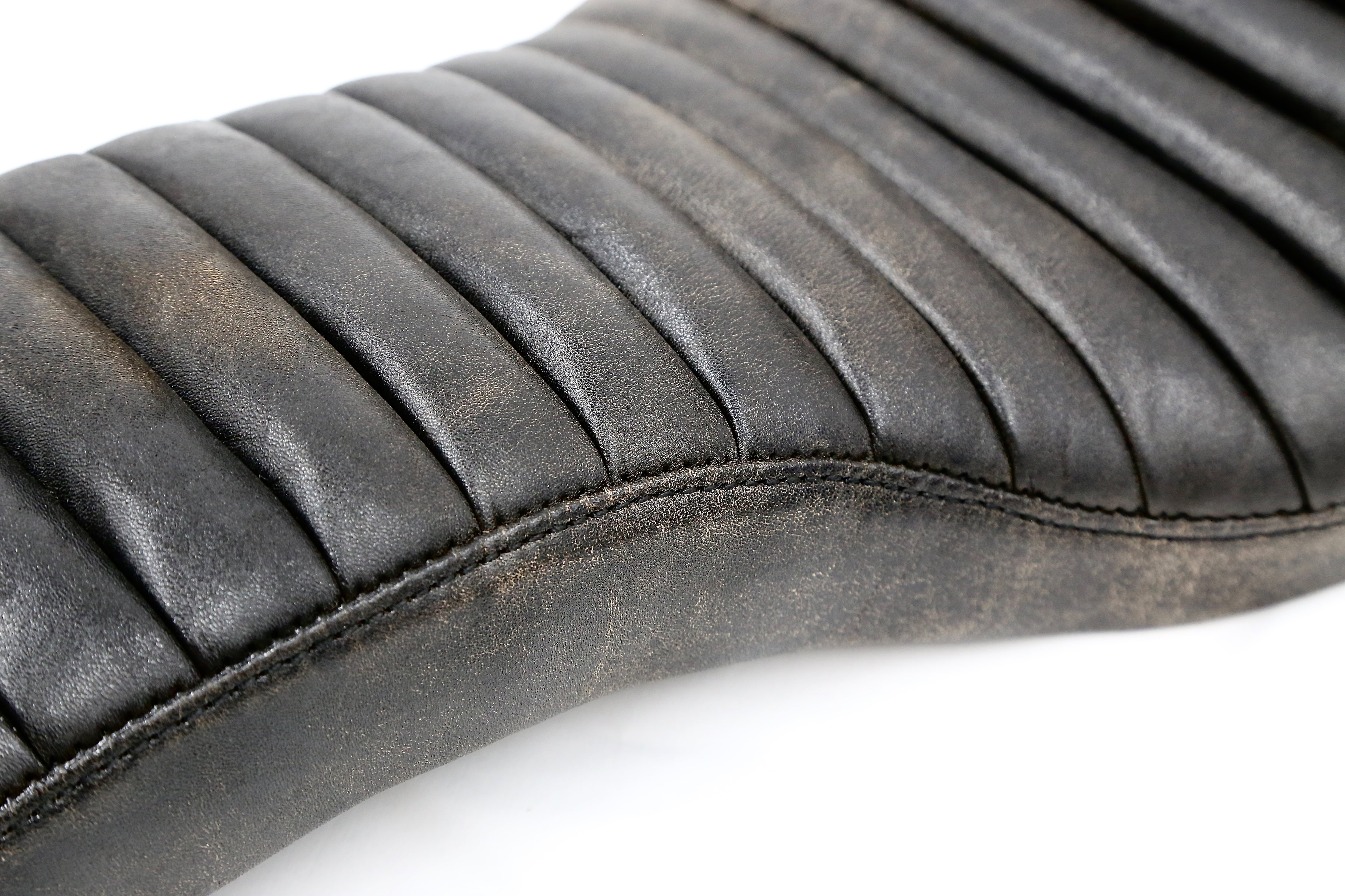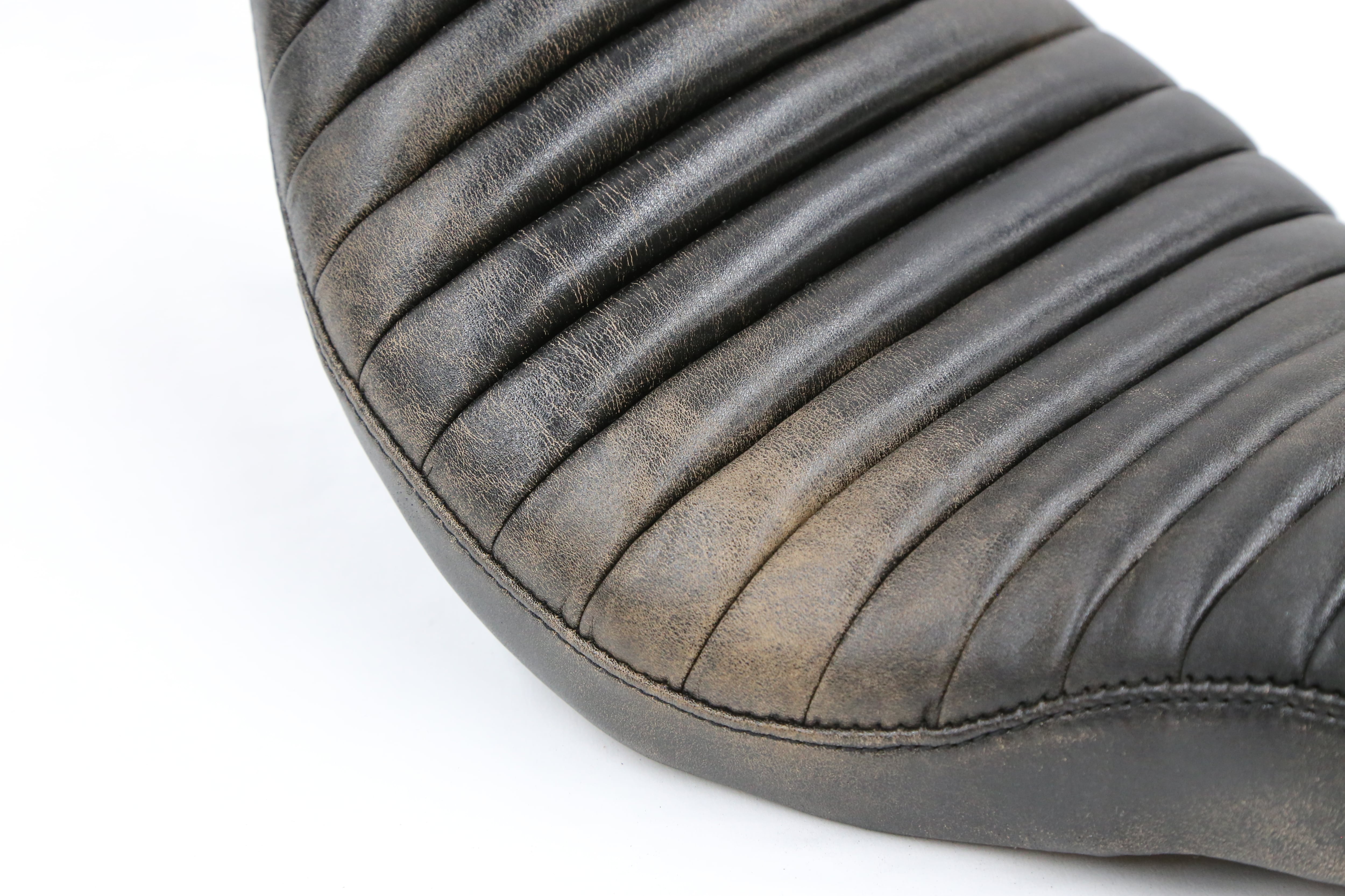 A 60s Bates-style cobra seat, crafted using crack leather developed in collaboration between W&Co. and a Japanese leather manufacturer.